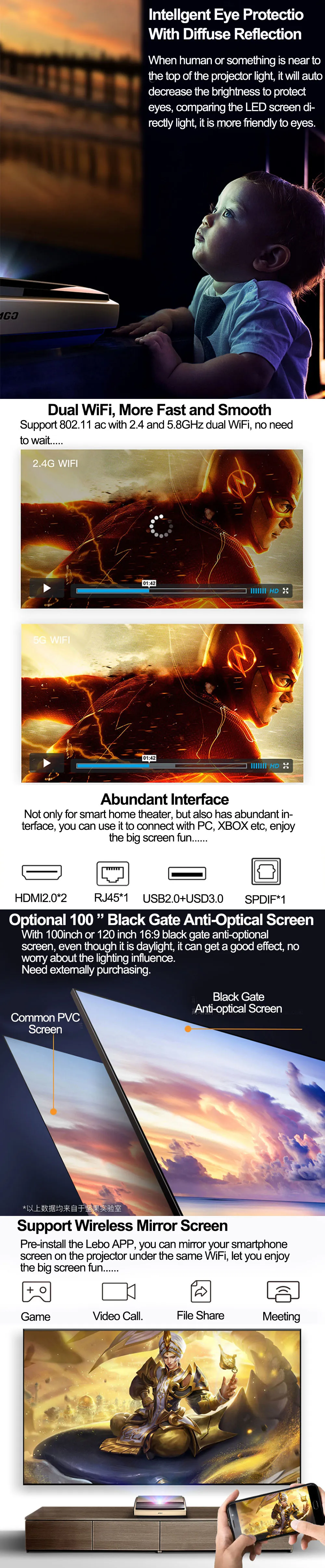 Our Salange JmGO S3 Android Smart Home Theater Proyector 4K Parameter as Follow: